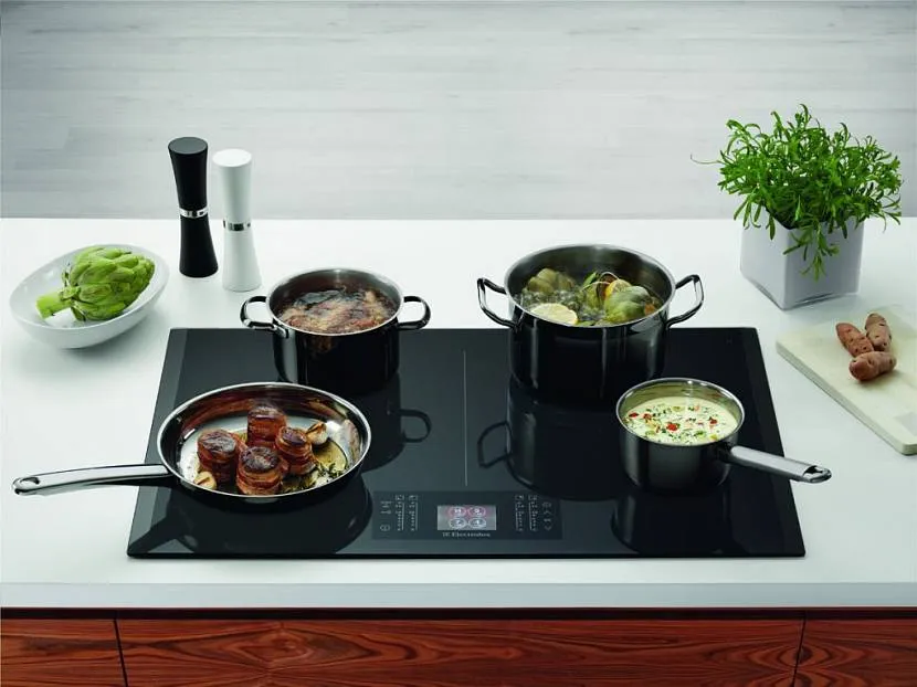 В то время как галогенные обеспечивают нагрев кастрюли через конфорки, индукционная действует напрямую на дно кастрюли, а поверхность плиты остается холодной. Это позволяет сократить теплопотери, обеспечив увеличенный на 20-30% КПД.