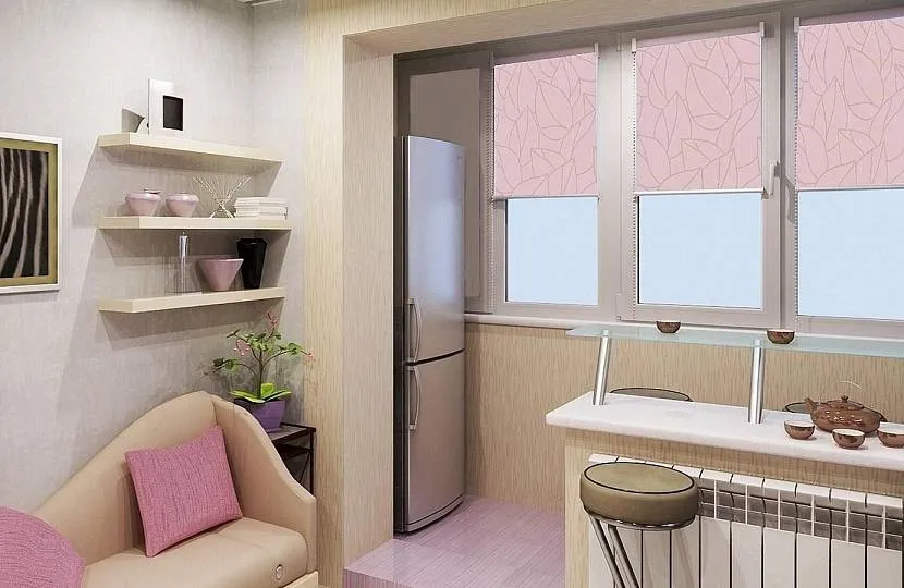 Жалюзи или римские шторы прекрасно спасут от солнечных лучей и не займут много места
