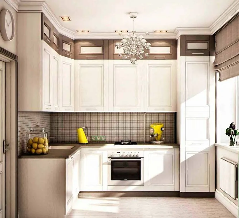 Особое внимание при разработке дизайна малогабаритной кухни 6 кв. м нужно уделить фурнитуре и бытовой технике