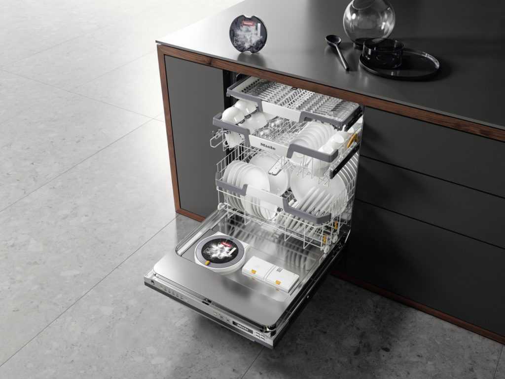 Такое устройство подойдет кухням с современным минималистичным дизайном с акцентом на техническую оснащенность. Вся техника Miele сочетается друг с другом — вы можете подобрать не только посудомоечную машину, но и другие приборы для дома в нашем каталоге.