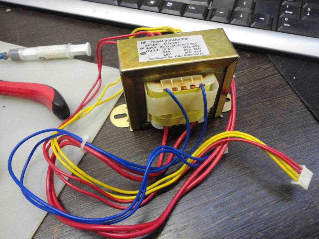 Начинают работу с разборки трансформатора, который извлекают заранее из микроволновой печи. Как правило, он содержит три обмотки. Повышающей, вторичной, имеющей на выходе 2000…25000 В, является та, на которой больше всего витков провода и он тонкий. Ее удаляют.