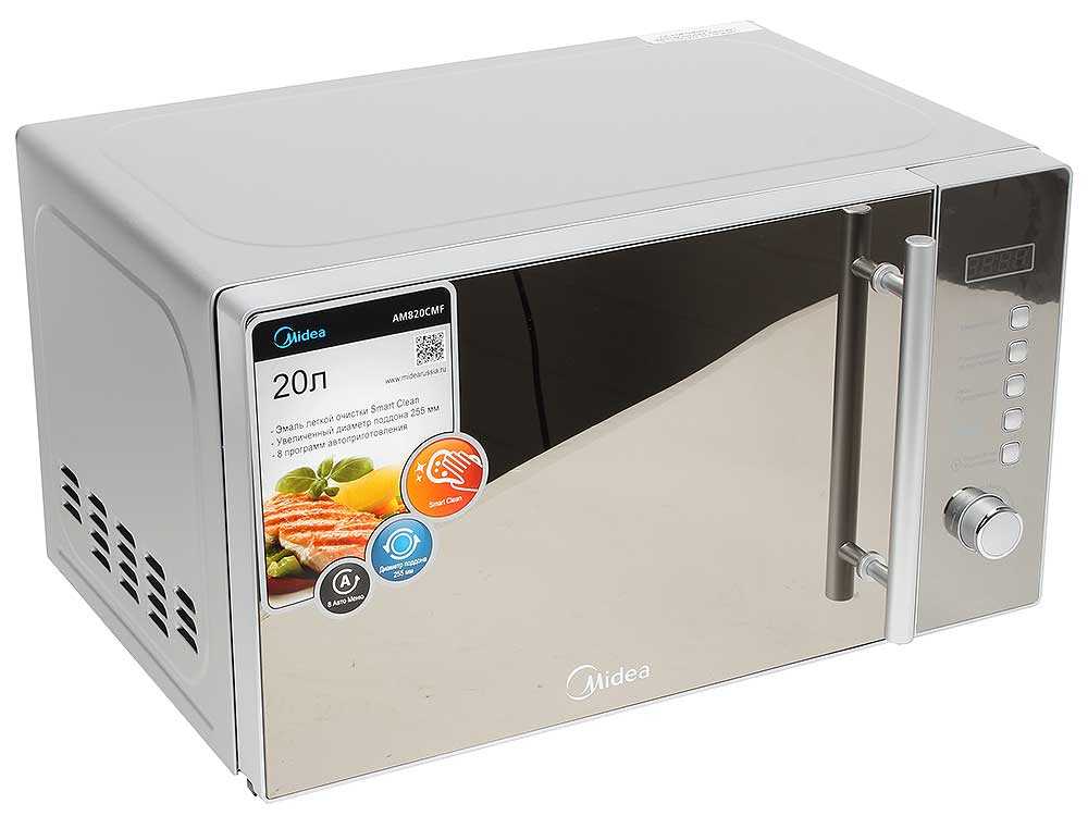 Midea AM820CMF — 20 литров, покрытие — эмаль, 0,8 кВт. На электронном управлении с кнопочными переключателями. Таймер на 95 минут. Цена — от 4290 рублей.