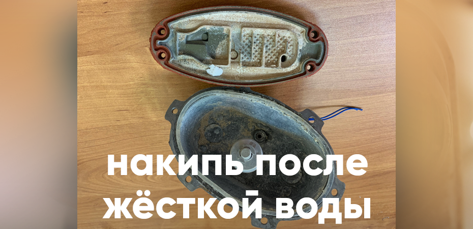Идеальная вода для глажки белья практически не оказывает никакого воздействия на рабочие элементы утюга. Но реальность далека от идеала — вода содержит большое количество солей, минеральных веществ, что способствует их отложению. В итоге образуется накипь на окружающих рабочих поверхностях. Отверстия на подошве забиваются, ТЭНы хуже и дольше нагревают, и могут окончательно выйти из строя. Повышенное содержание мела провоцирует появление белых разводов на обрабатываемом текстиле.