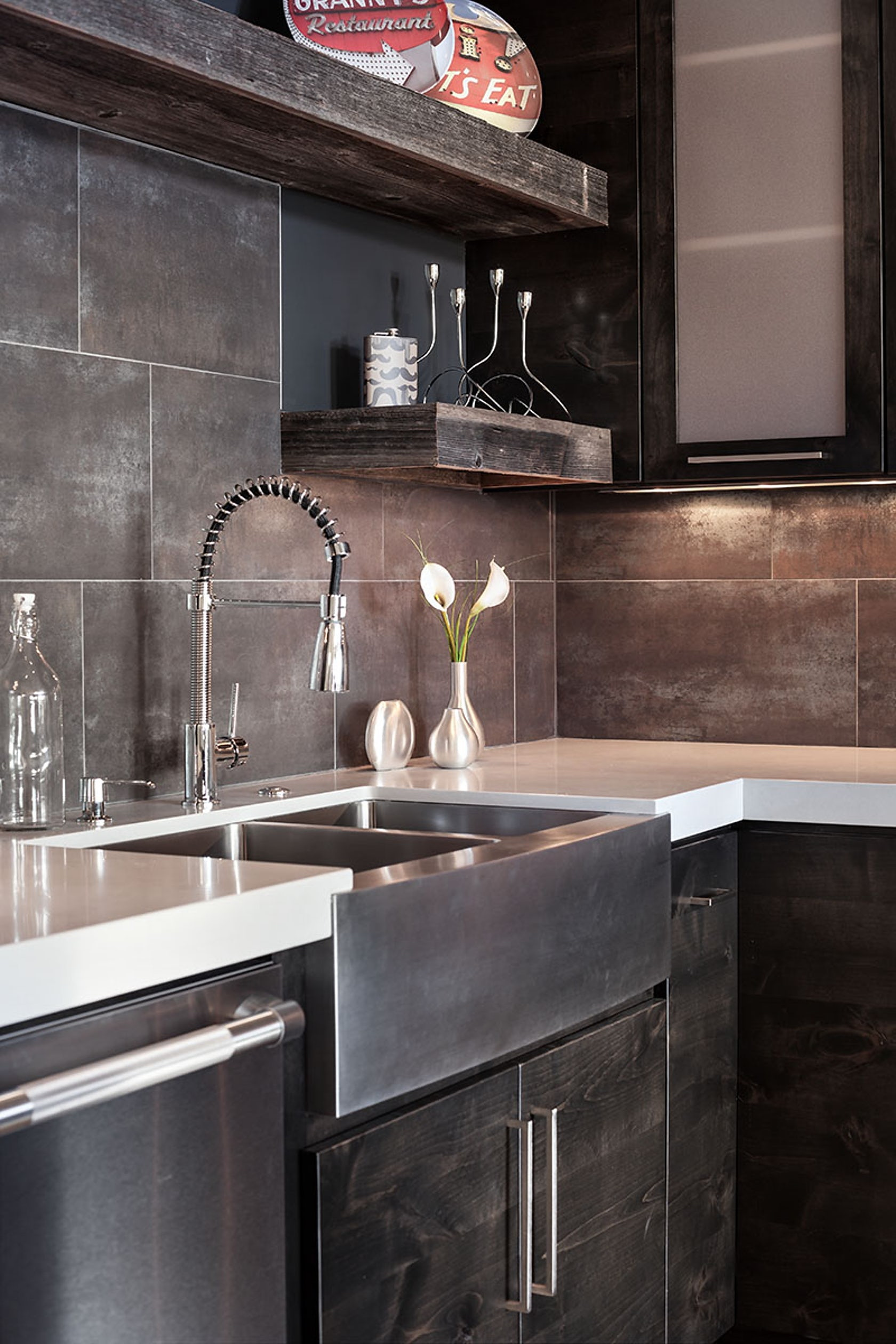 Наиболее гармонично каменная мойка будет смотреться в гарнитуре с фасадами из массива дерева или с имитацией дерева. Любителям стиля кантри она также придется по душе.