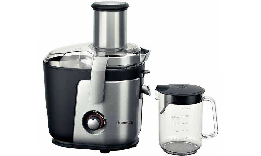 Недорогая универсальная соковыжималка от гиганта в области бытовой техники Bosch. Проста в управлении, вместительна. Мощность — 1200 Вт, имеет 3 скорости, может перерабатывать большие объёмы продуктов. На это указывают большие резервуары для сока и жмыха — 1,5 и 3 л. Ёмкости раздельные, их легче очищать. Материал корпуса — сталь. Защита от случайного включения, функция автоматического выброса мякоти, система «Капля-стоп», пеносепаратор, защита от случайного включения.