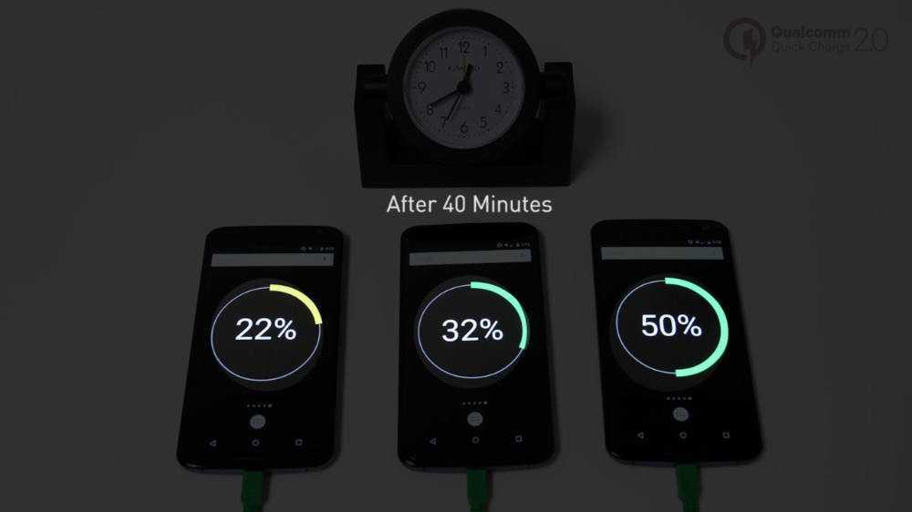 Однако разница в названиях не касается принципа работы технологии. Технология Quick Charge(QC) обеспечивает максимальную полную регенерацию разрядившейся батареи смартфона всего на протяжении получаса (против двух-трех часов работы обычного зарядного устройства).
