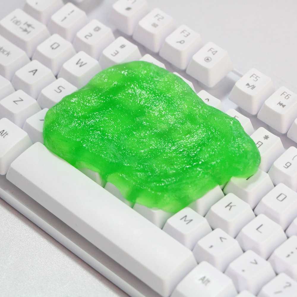 Чтобы почистить клавиатуру, не обязательно приобретать профессиональные дорогостоящие продукты. Если дома есть лизун, можно вполне использовать его для очистки девайса. Способ применения прост − нужно просто собрать слаймом мелкие частички мусора с поверхности компьютерной техники.