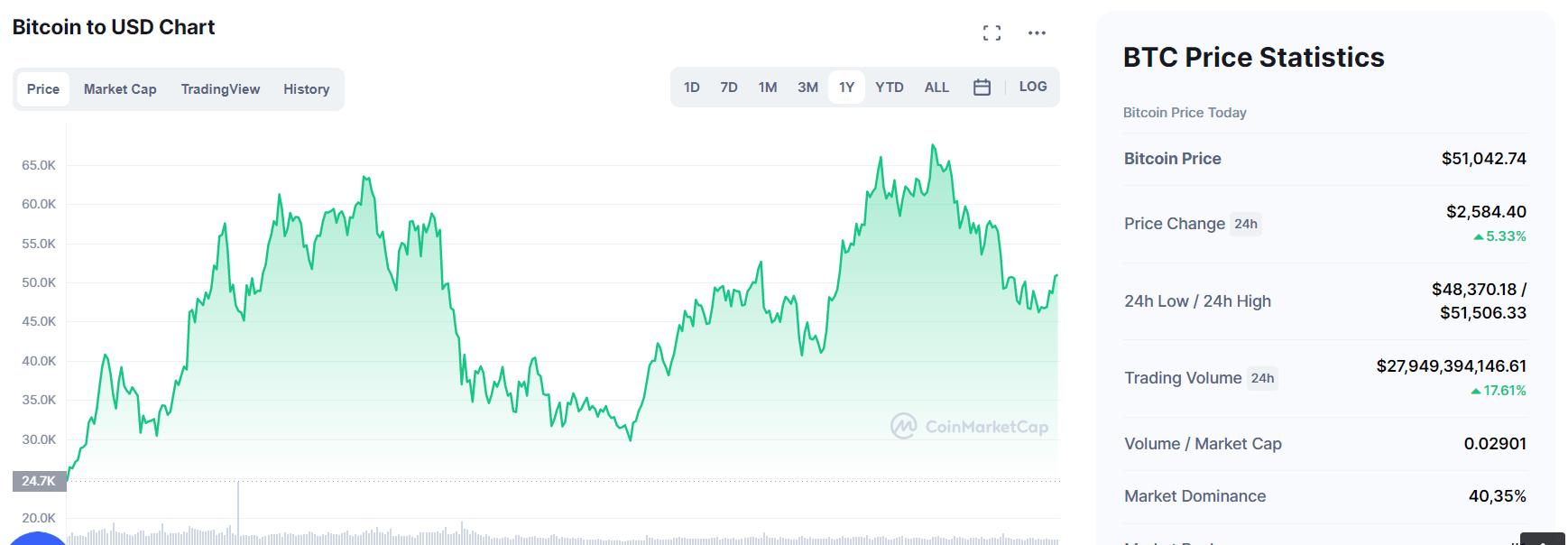 На момент написания статьи рыночная стоимость BTC составляет порядка 50 000 USD.