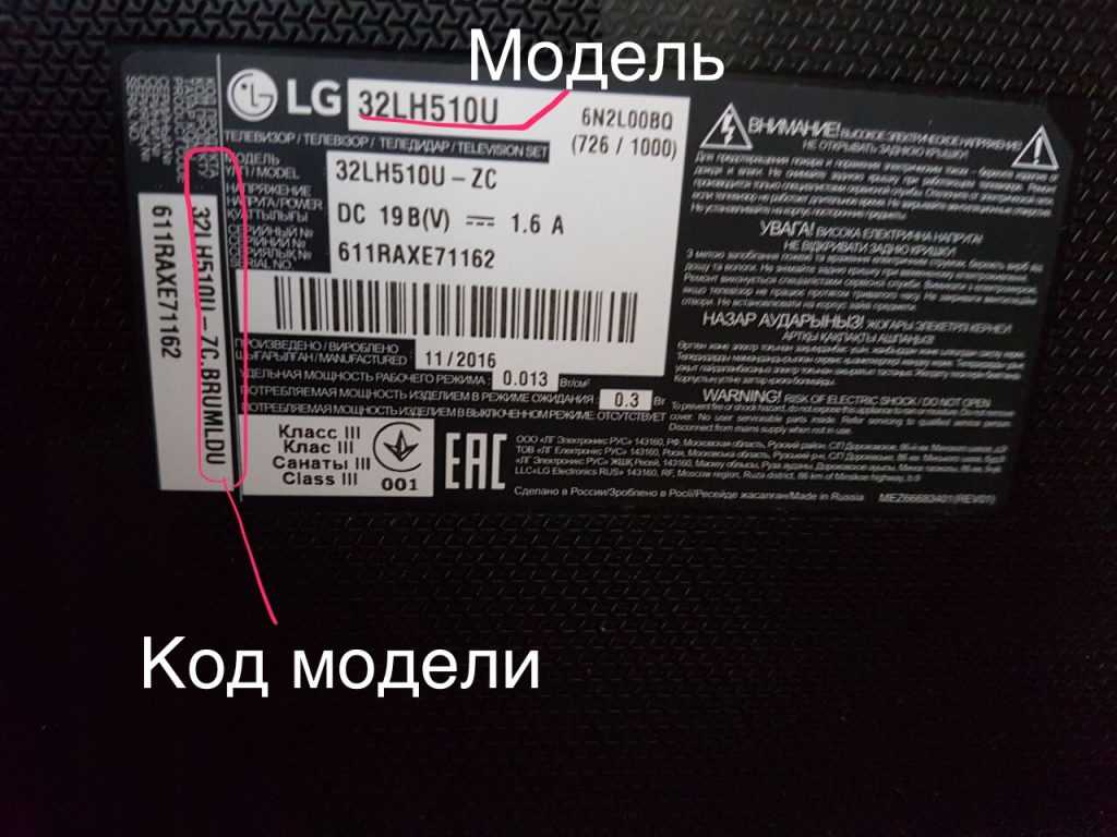 - Зайти на сайт LG и в поиске задать свою модель ТВ. Точный номер модели можно посмотреть на наклейке на задней стенке корпуса устройства или через «Меню» в «Настройки», потом «Поддержка» и «Информация о продукте».