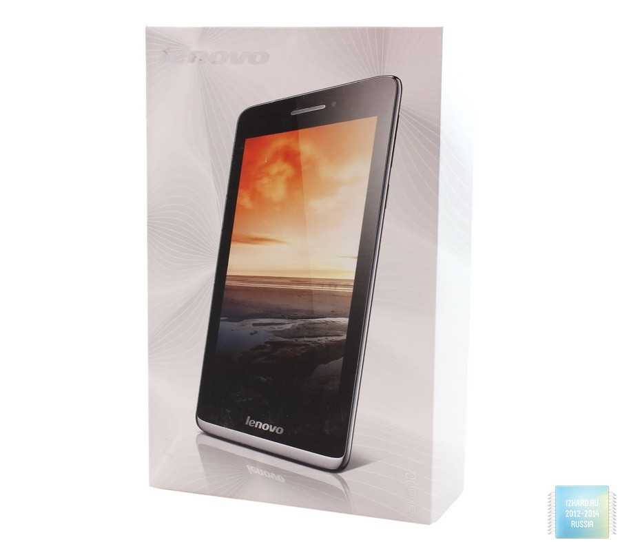 Планшет упакован в серо-белую коробку небольшого размера, на лицевой стороне находится изображение самого устройства, на тыльной — основные технические характеристики.