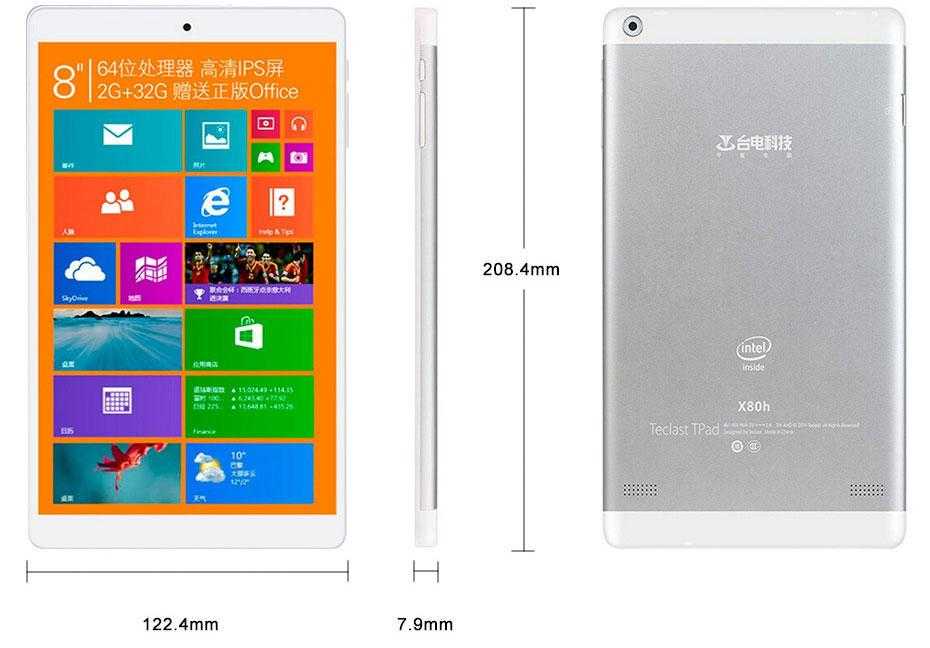 CPU: Intel Atom X5-Z8300 Quad Core 1.44GHz (up to 1.84GHz), 4 ядра, 14nm технология, энергопотребление до 2WGPU: Intel HD Graphic Generation 8 processor, 12 ядерAnTuTu: 64.000 балловRAM: 2GB DDR3L (Low Power)ROM: 32GB eMMC + SD-карта до 128Гб (32GB и 64GB проверено, поддержка карт 128GB проверяется)OS: DualBoot: Windows 10 (64-bit) + Android 5.1 (32-bit)Display: 8», 1920 X 1200, IPS не OGS технологияБатарея: 3800 мАч (проверено! соответствует)Bluetooth: 4.0Другое: Wi-Fi, Wi-Fi Display, HDMI output, OTG, две камеры по 2Мр.