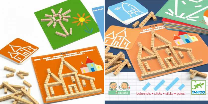 17. «Палочки» Djeco — в процессе игры ребенку нужно собрать из деревянных палочек разного размера фигуру, изображенную на карточке с заданием. Настольная игра палочки развивает логику, пространственное мышление и мелкую моторику ручек, а также поможет в изучении счета.