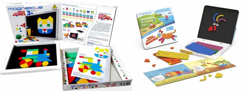 4. Мягкая мозаика Magneticus — это набор, состоящий из геометрических фигур разных цветов и форм, металлического поля для игры и буклета с примерами картинок. Мозаика способствует развитию воображения, мелкой моторики, внимательности, а также воспитывает в ребенке усидчивость.