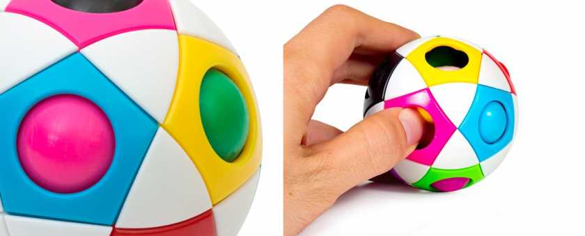 3. Мячик Орбо — простая и увлекательная механическая головоломка, развивающая мелкую моторику и позволяющая повторить цвета, ища нужное поле для шарика определенного цвета.