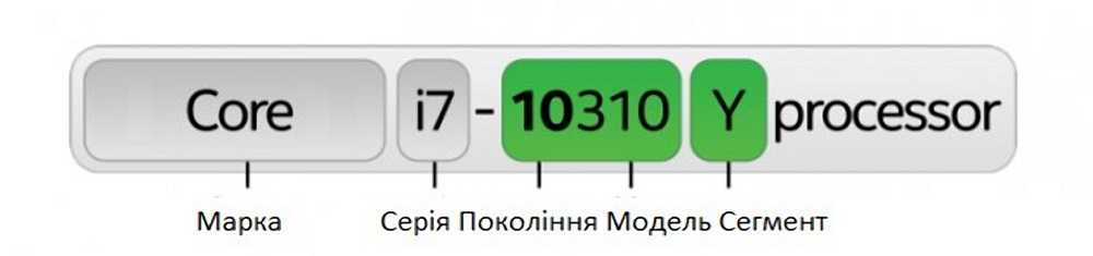 Сейчас попробую на этой картинке объяснить, как расшифровывать обозначения процессоров Intel. Для этого на примере одного процессора я разделю его название на несколько сегментов: