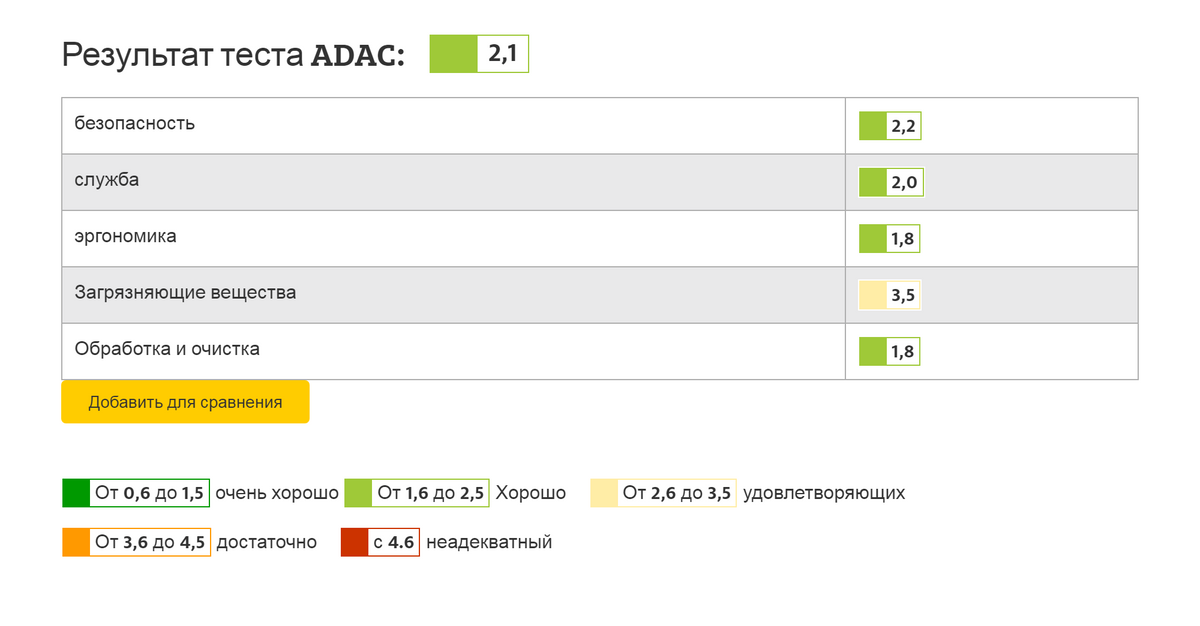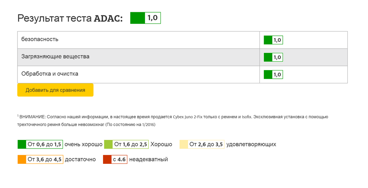 | Модель | год теста | Цена Eur | Isofix | Оценка ADAC | Безопасность | Эксплуатация | Эргономичность | Экологичность | Установка/съем | Вес |