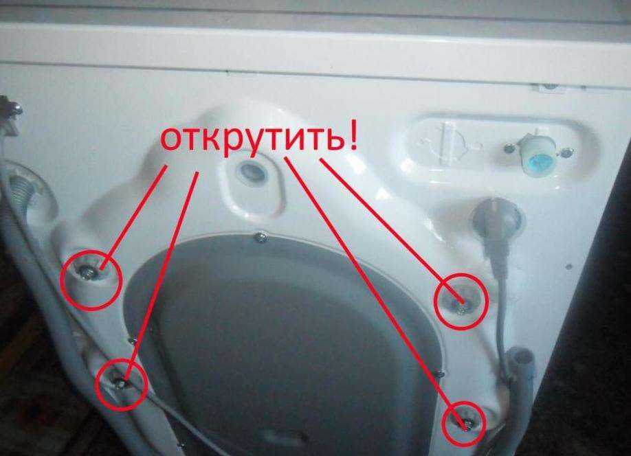 Перед запуском прибора в работу нужно удалить упаковочные крепления. Для этого машину наклоняют назад, после чего тянут за упаковочную ленту. Транспортировочные болты снимают только после удаления упаковочных креплений. Эксплуатация стиральной машины при наличии транспортировочных болтов строго запрещена. Их демонтаж осуществляется в следующей последовательности: