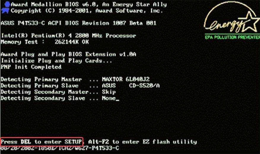 - Для захода в системное меню, при загрузке ноутбука жмут на кнопку Delete. Но могут быть и другие варианты, в зависимости от производителя устройства. Например, в ноутбуках Sony эту функцию выполняет кнопка Assist, в Asus и Acer – F2 или F