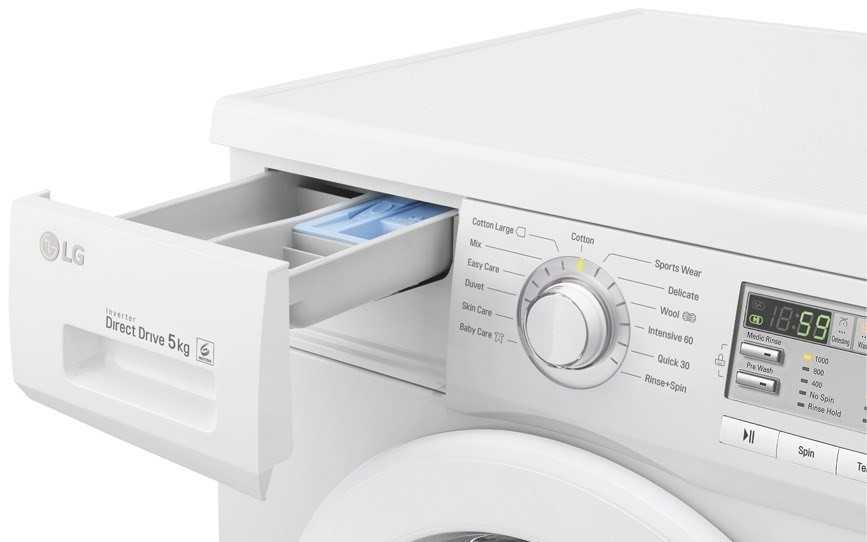 Стиральная машина LG Inventer Direct Drive 5 kg может не функционировать корректно из-за проблем с уплотнителем. Во избежание этого раз в месяц уплотнитель нужно чистить.