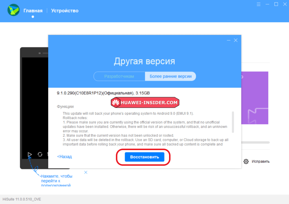 Этот способ можно использовать для моделей Honor и Huawei с прошивкой EMUI 8.0, 8.2.