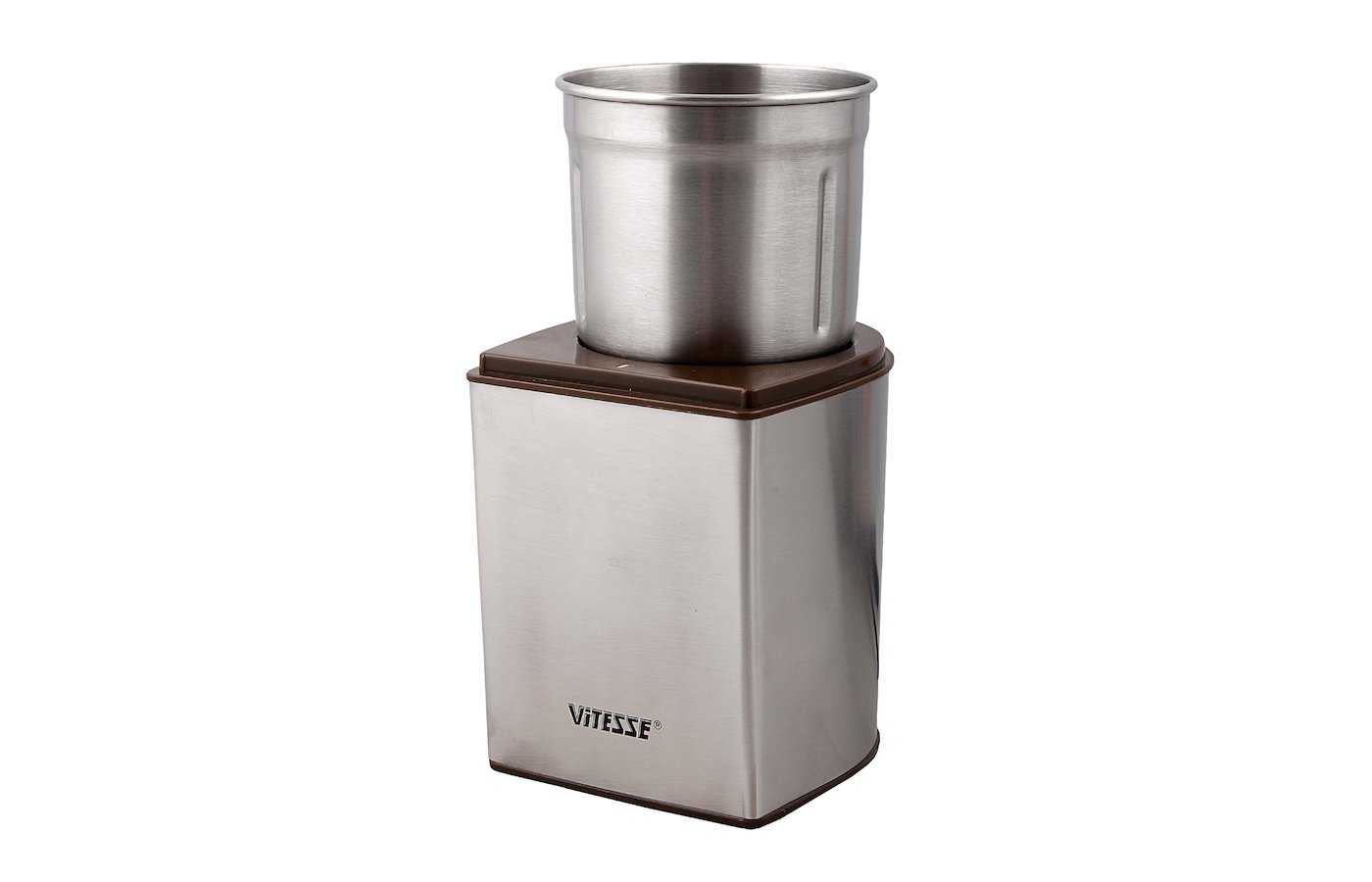 Электрическая кофемолка с регулировкой помола, мощностью 170 Вт представлена в двух оттенках: черном и серебристом. Корпус изготовлен из пластика повышенной прочности, имеет прорезиненные ножки. Ротационные ножи и емкость для зерен выполнены из нержавеющей стали. Вместимость чаши — 90 г. Кофемолка имеет функцию автоблокировки включения при открытой крышке и системой регулировки помола зерен. Количество степеней помола — 3. Устройство отличается простотой в уходе — прозрачный контейнер для зерен легко снимается, а в комплект включена специальная щетка для очистки. Имеются отдельные отсеки для шнура и щетки.