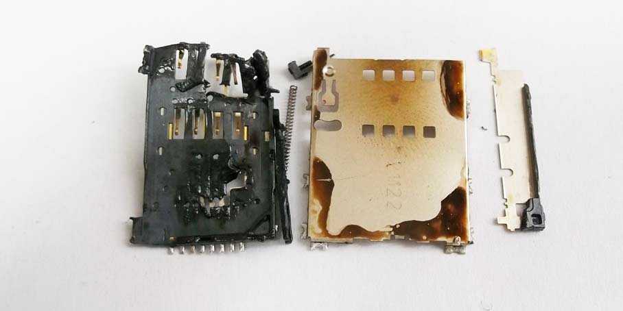 - Поврежден разъем. В случае неправильной установки или самостоятельной обрезки SIM высок риск повреждения разъема. Восстановить такую неисправность своими руками не получится.
