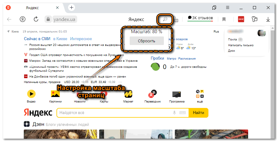 Последние версии браузеров позволяют изменять размеры страниц с помощью мышки и клавиатуры. Это делается очень легко и быстро. На клавиатуре зажимается клавиша CTRL, а клавишами + или — (плюс или минус) регулируется размер страницы.