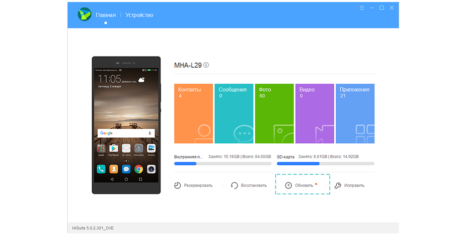 Обновление устройств Huawei и Honor через HiSuite