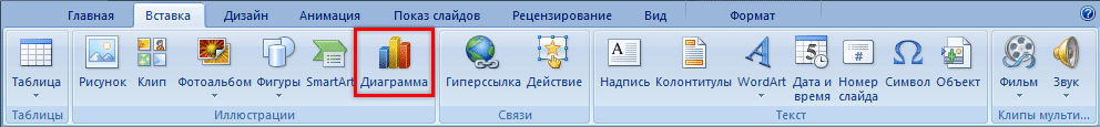 Графики, диаграммы. Для их создания также используем вкладку «Вставка» — через кнопку «Диаграмма».