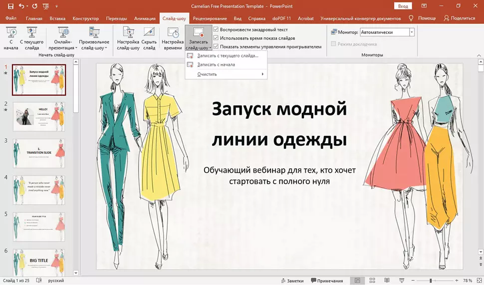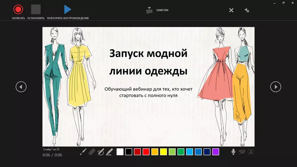 Подключите и настройте необходимые устройства и начните запись демонстрации слайдов