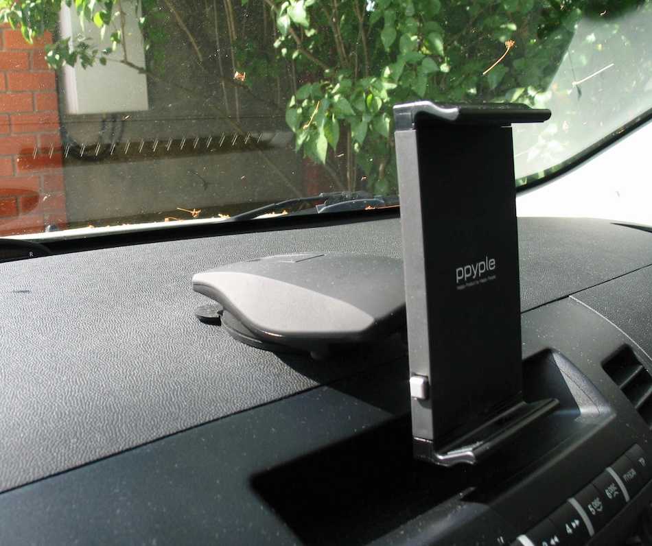 Диапазон температурного режима эксплуатации -20°C +70°С. Удобен в использовании, так как позволяет вставлять планшет в зажим одним движением руки. Поставка вращается во всех плоскостях. Имеет функцию выдвижения вперед, правда, всего на 2 см. Изготовитель PPYPLE INC (Южная Корея).