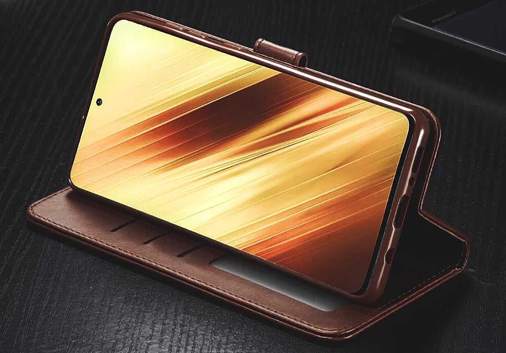 Это относительно дорогой футляр из натуральной кожи питона с характерным для нее рельефным узором. Он выпускается в красном, синем, черном и коричневом цветах. У производителя есть модели для всех смартфонов Samsung, от J3 и до современных флагманов.