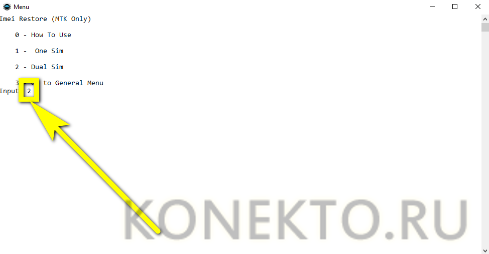 Или сразу перейти к делу. Если Android-телефон поддерживает использование одной SIM-карты, необходимо ввести команду «1»; если два — «2».