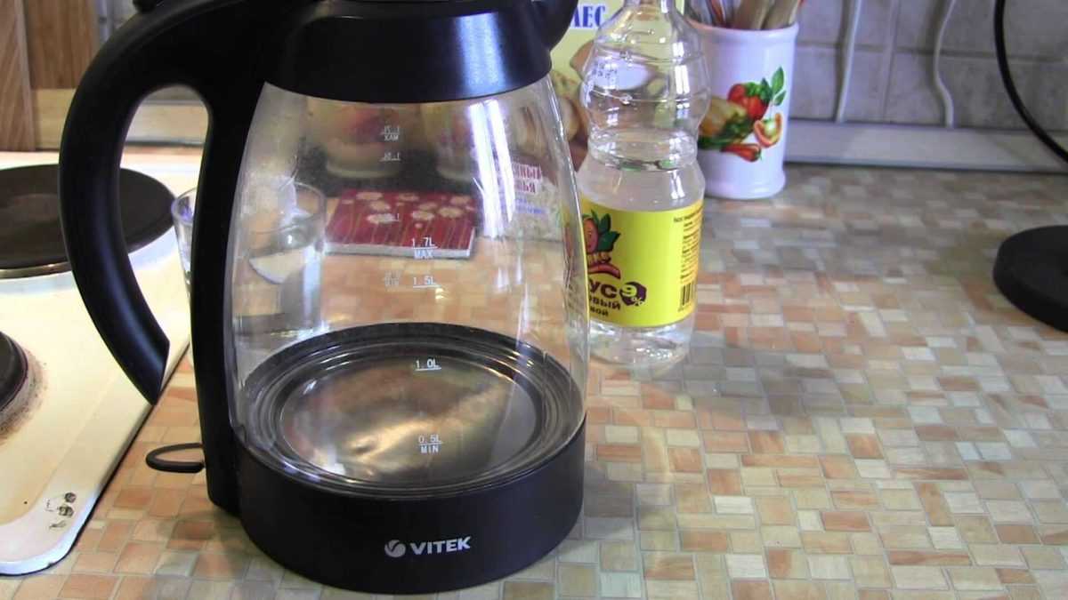 Другим вариантом станет уксус. Вода смешивается пополам с уксусом и оставляется в электрочайнике на день. Затем раствор сливается, а поверхность чистится грубой губкой либо щеткой. Чтобы тщательно очистить чайник, лучше прокипятить чистую порцию воды.