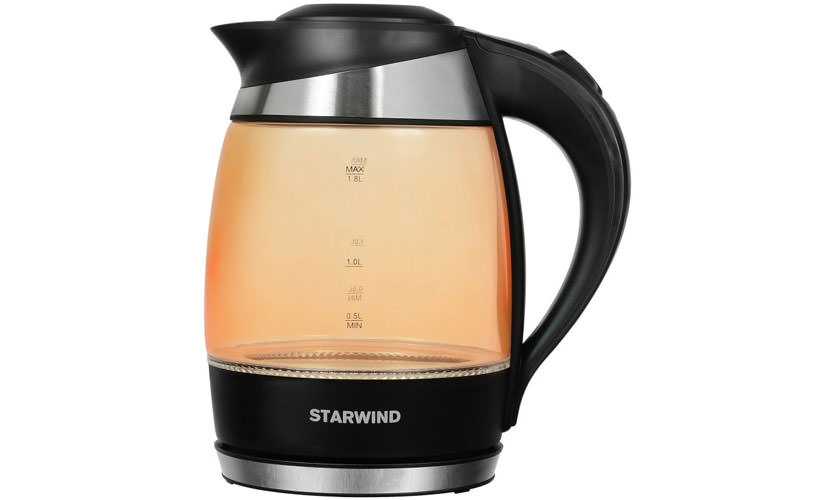 STARWIND SKG2212 — один из серии чайников, выполненных из цветного стекла. Свои функции выполняет, но судя по отзывам пользователей, ненадёжный, имеет большой процент брака. Рекомендую рассмотреть более практичные модели — VITEK VT-7037 или Polaris PWK 1719CGL.