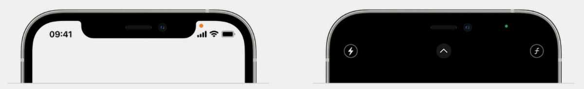 На iPhone с Face ID такие индикаторы располагаются в левом верхнем углу за часами. Остальные модели iPhone при этом полностью окрашивают статусную строку в нужный цвет.